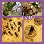 The bar was decorated with photos from the wedding along with Comic-style signs. I used cardstock to create frames for the photos and gave the framed photos as favors to guests.