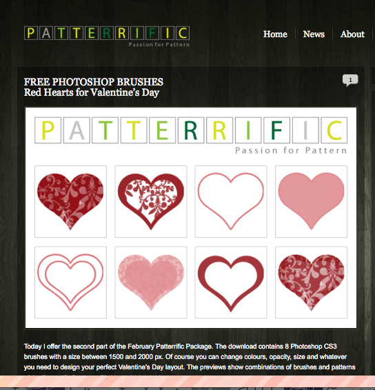 Second on the free Valentine’s Day Goodies is Patterific’s FREE Photoshop brushes!