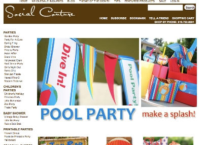 “Social Couture is an on-line store for home decor and entertaining products. We provide imaginative party decorations and inspired tabletop ideas, so that throwing a festive party needn’t be such a production and an expense for our customers. Our single, pre-packaged goal is to deliver a high quality themed party complete with decorations to centerpieces to napkins & plates in an effort to simplify and elevate our customer’s lives. Our customers will only need to consider their occasion. Once an order is placed a prepackaged theme party will arrive in a box and the entertaining preparation is complete. The contents of prepackaged box, delivered to the doorstep, can easily be blended into our customer’s style, dining rooms, menu choices and lives. In an effort to further offer simplicity and choice to our customers, Social Couture also offers a wide variety of other high end party supply products from dinnerware, glasses, flatware and votives to music and unique entertaining products.”