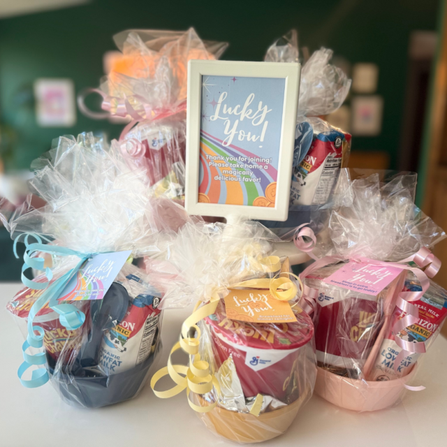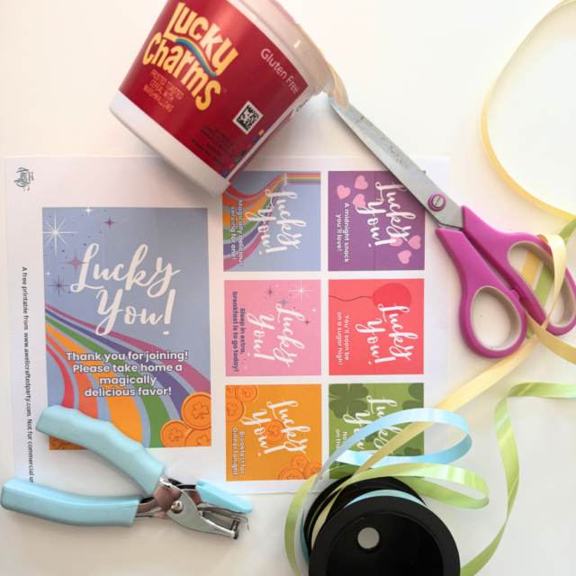 - Single Serve Cereals (for this event I did Lucky Charms Cereal* as it was a St. Patrick’s Day Party Favor for my Lucky Charms party!)